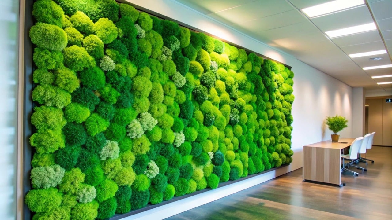 In Büroräumen haben Mooswände nicht nur eine dekorative, sondern auch eine funktionale Wirkung. Durch ihre Struktur können sie Schall absorbieren und so die Akustik verbessern, was besonders in offenen Arbeitsbereichen von Vorteil ist. Außerdem sorgen sie für ein angenehmes Raumgefühl und können stressreduzierend wirken. Besonders in Großraumbüros sind Mooswände eine beliebte Lösung, um eine angenehme Arbeitsatmosphäre zu schaffen und gleichzeitig gestalterische Akzente zu setzen.